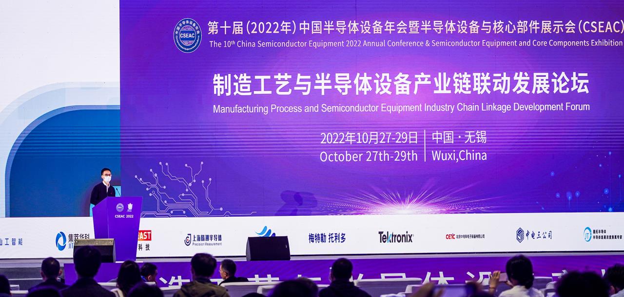 在10月29日的“制造工藝與半導體設備產(chǎn)業(yè)鏈聯(lián)動(dòng)發(fā)展論壇”中,我司測量裝備事業(yè)部總經(jīng)理張旭以“探索核‘芯’技術(shù),打造國產(chǎn)化非接觸檢測裝備”為主題,講述了晶圓檢測技術(shù)的自主研發(fā)歷程,介紹了集萃華科晶圓檢測裝備的技術(shù)特點(diǎn)和產(chǎn)品優(yōu)勢,獲得與會(huì )專(zhuān)家的高度評價(jià)與認同。